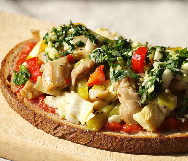 Bruschettas aux champignons et artichauts